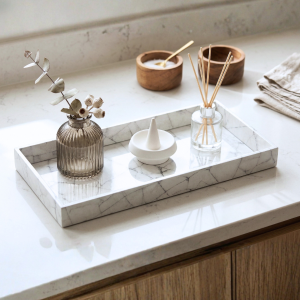Ideal para darle el detalle a tu hogar. Esta bandeja es muy versatil ya que puede usarse para el desayuno, organizador de baño, organizador en un recibidor, etc.