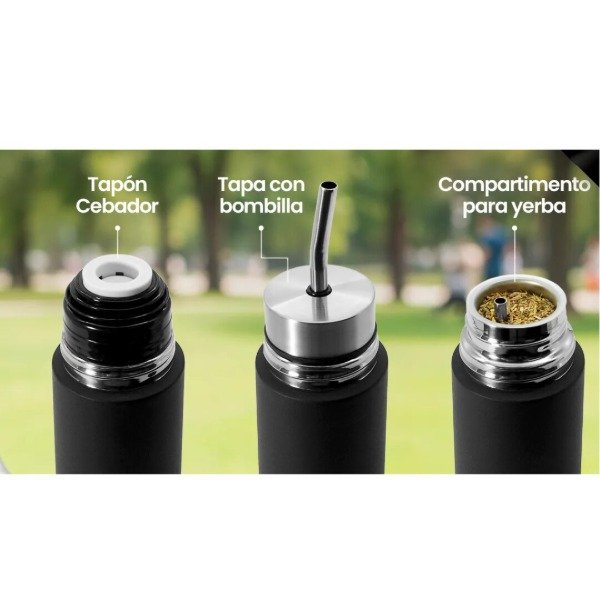 - Diseño 3 en 1, termo, mate autocebante, botella.