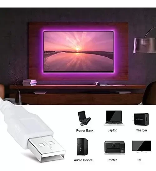 La tira LED funciona a 5 V y se alimenta a través del puerto USB del televisor, lo que permite encender/apagar en sincronía con la mayoría de los modelos de televisor. La retroiluminación LED de este televisor presenta 5050 colores personalizables y 8 niveles de brillo. Puede ajustar el brillo según sea necesario para disfrutar de una experiencia de visualización más cómoda. La longitud de 3m se adapta a los cuatro lados de un televisor de 32 a 58 pulgadas.